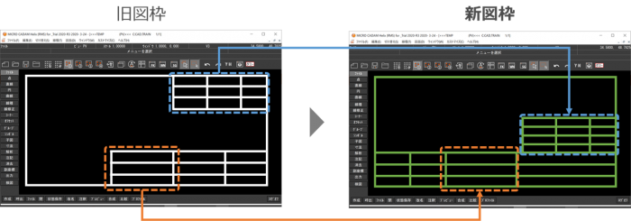 まずは図枠の一括変換です。 これは変換元となる図枠の描き方によって変換対象を特定します。 |
