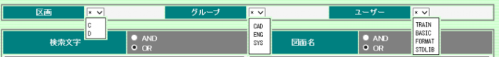 ワイルドカード指定ができますので、「全区画」「全グループ」「全ユーザー」といった 指定が可能です。 検索キーワードも複数指定でき、図面名(ファイル名)と組み合わせた検索も可能なので、絞り込み検索ができ、よりHit率が向上します。 |